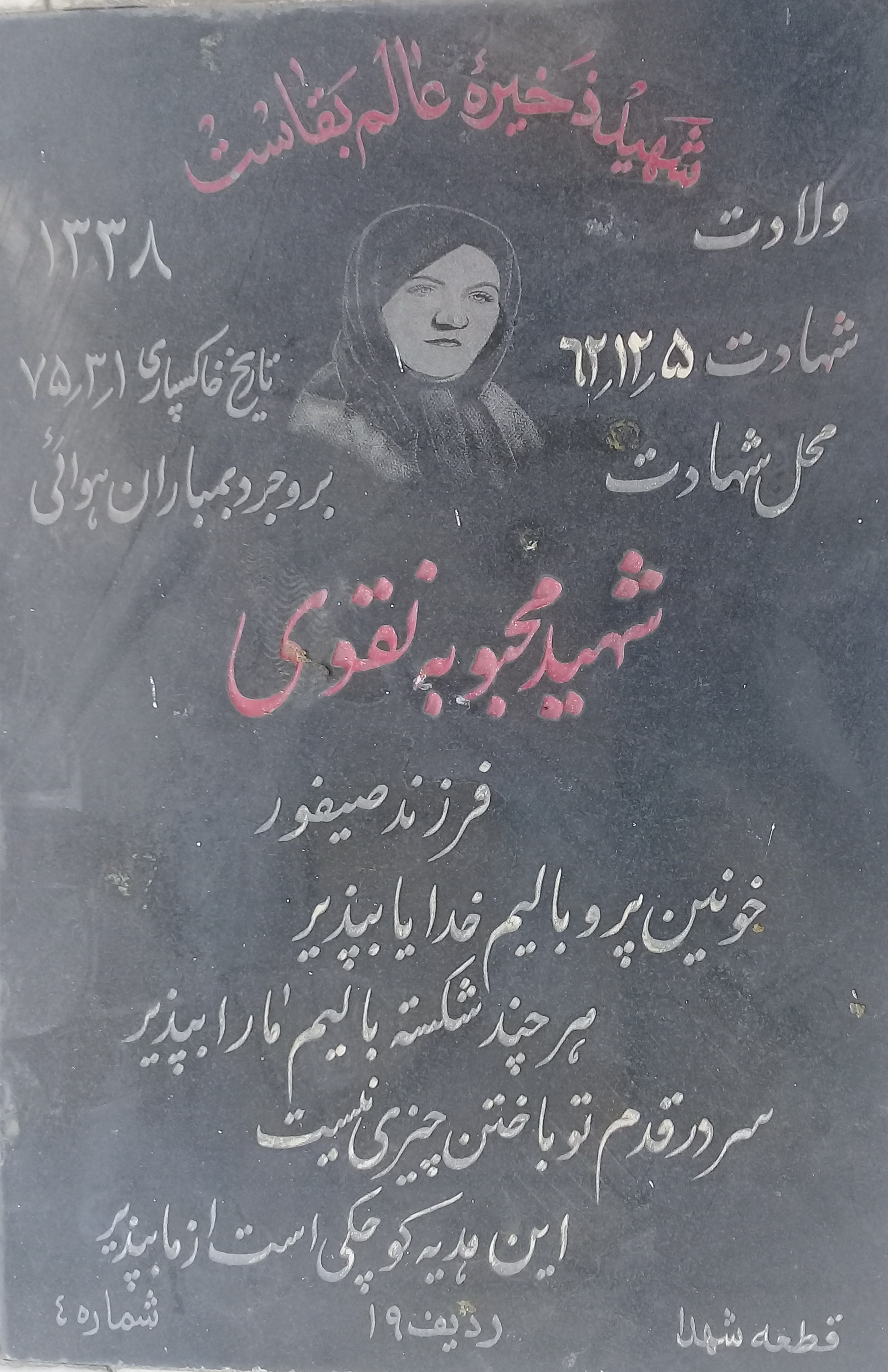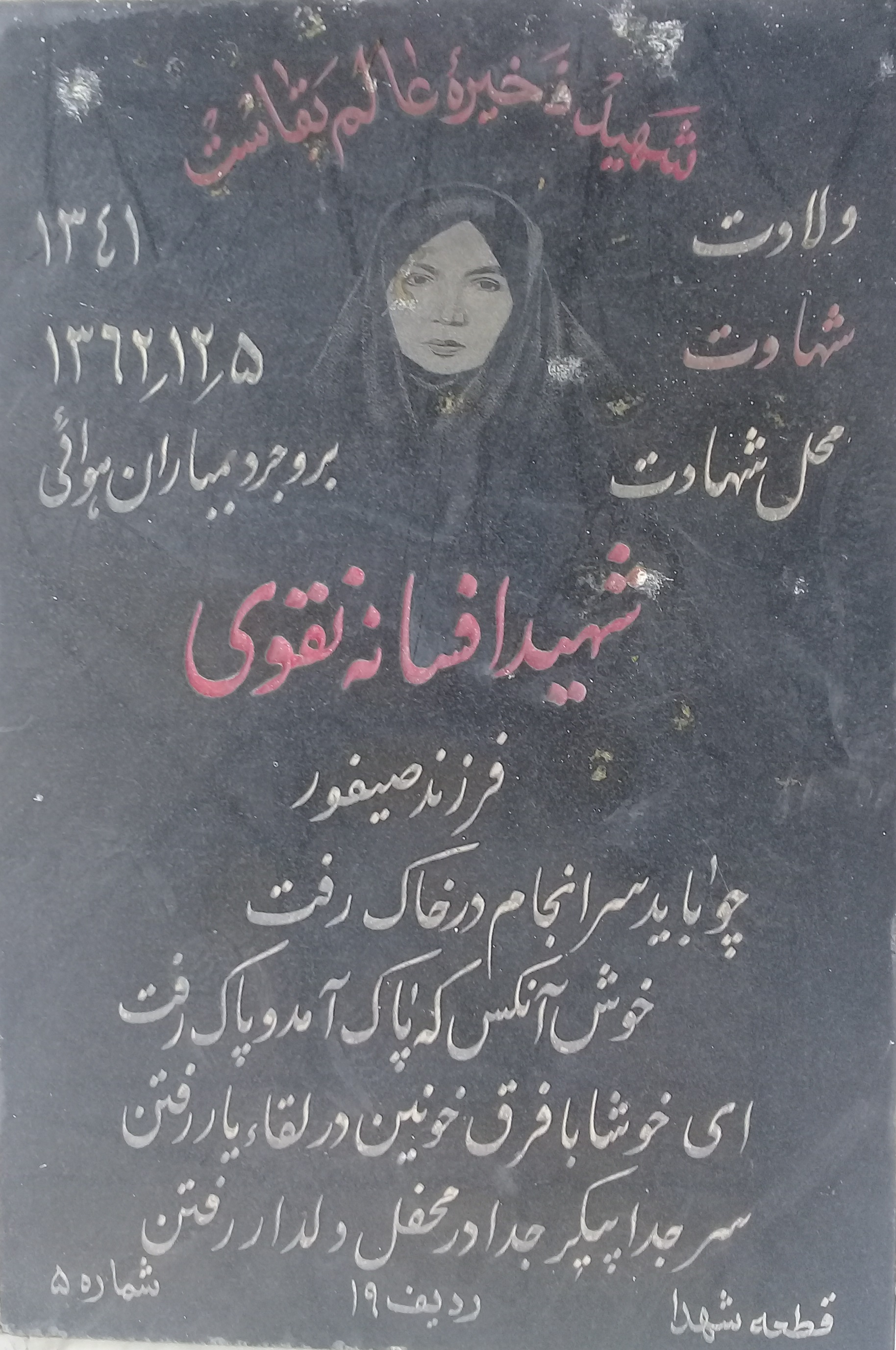 نام مادر : ناهید (شهادت 1365 )